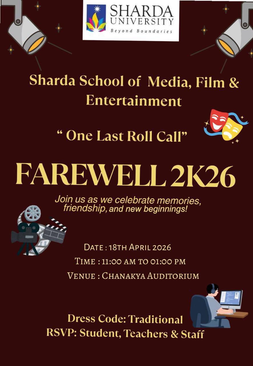 We are pleased to announce the Farewell Ceremony of Sharda School of Media, Film & Entertainment (SSMFE) Senior Batch.