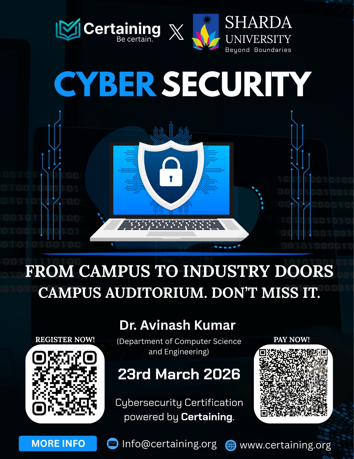 Trainotrack Solutions Pvt. Ltd. proposes an on-campus seminar titled “Artificial Intelligence and Cybersecurity: The Next Wave of Employability & the Role of Global Certifications.” The seminar aims to create awareness among students about emerging technologies, global IT certifications, and industry expectations. Participants will gain insights into career pathways in AI and cybersecurity and learn about globally recognized certification programs.