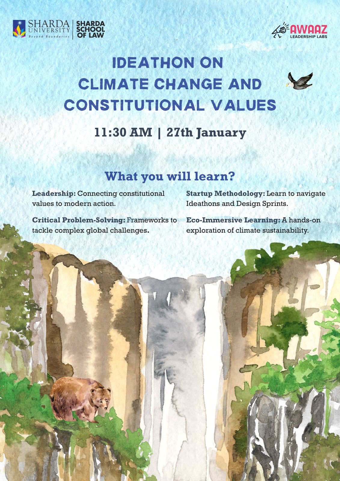 It is with great pleasure that Sharda School of Law, Sharda University, is organizing a Ideathon on Climate Change and Constitutional Values to be heldon 27th January 2026 (Tuesday) from11:30 AM onwards.