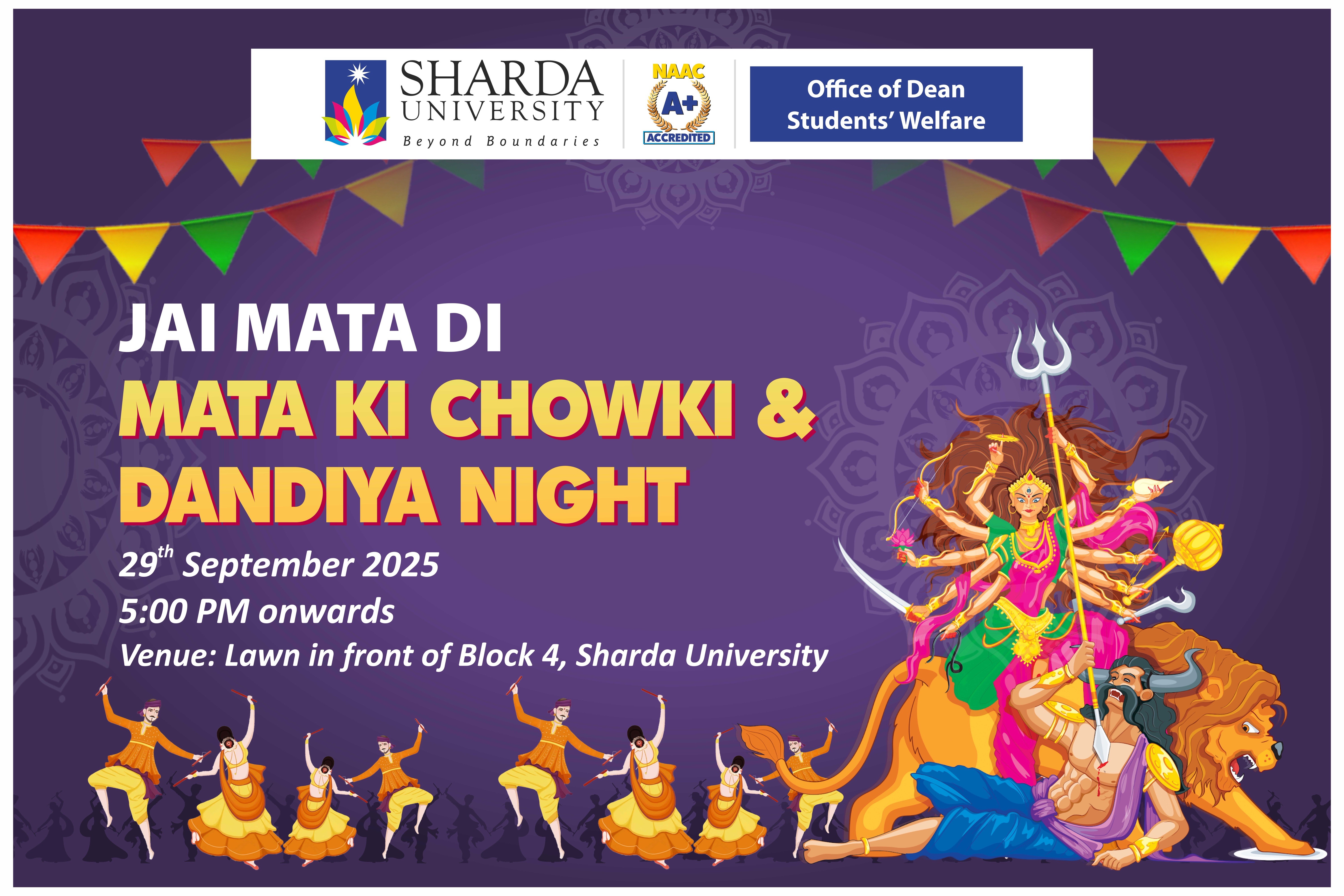 The Office of Dean Students’ Welfare, in collaboration with IHA, is delighted to invite you to Mata Ki Chowki & Dandiya Night at Sharda University! Join us for an evening of devotion, music, dance, and togetherness.