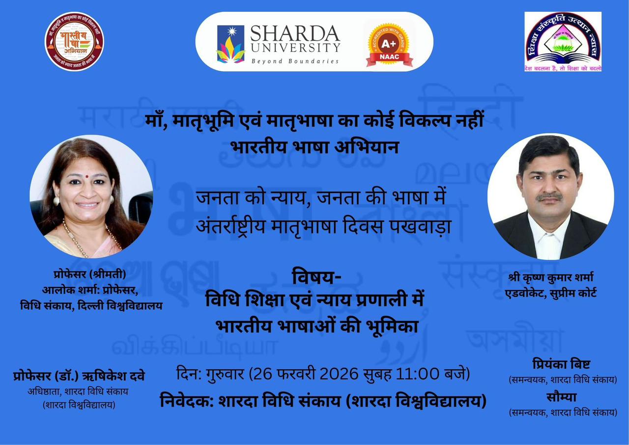 Sharda School of Law, Sharda University, is organizing a Guest Lecture on Thursday, 26th