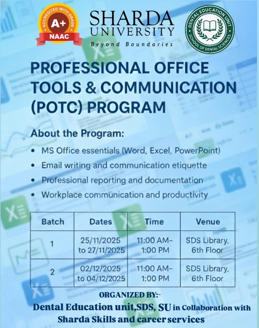 Professional Office Tools & Communication (POTC) Program” has been planned for the executive assistants, office assistants, and receptionists of the School of Dental Sciences, Sharda University.