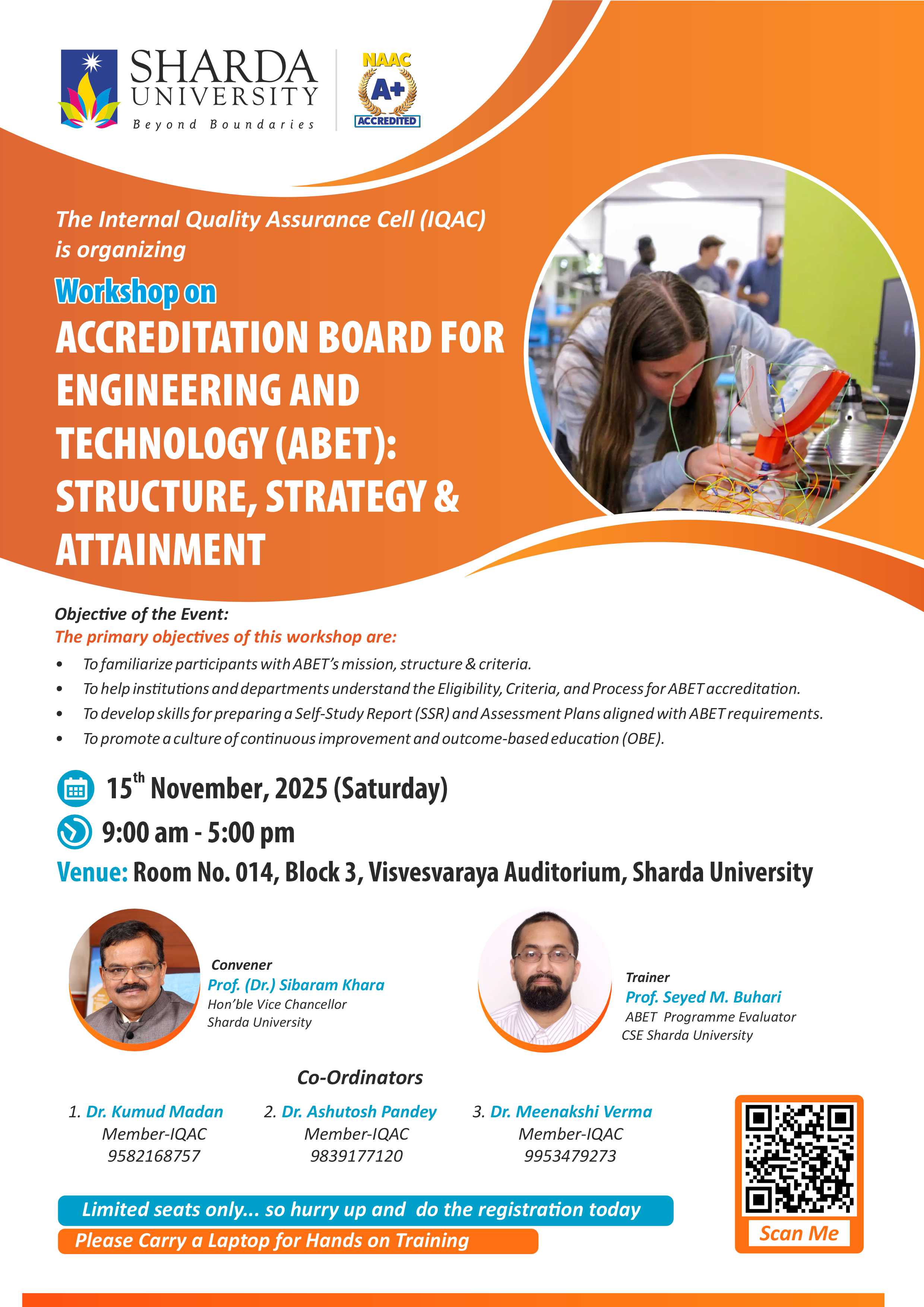 • Prof. Seyed M. Buhari, ABET Programme Evaluator, CSE ,Sharda University